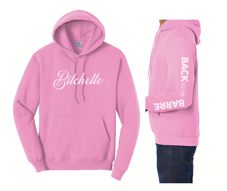 "Bitchette" -Back to the Barre Bitchette Pink hoodie (tip: order larger for an oversized fit)