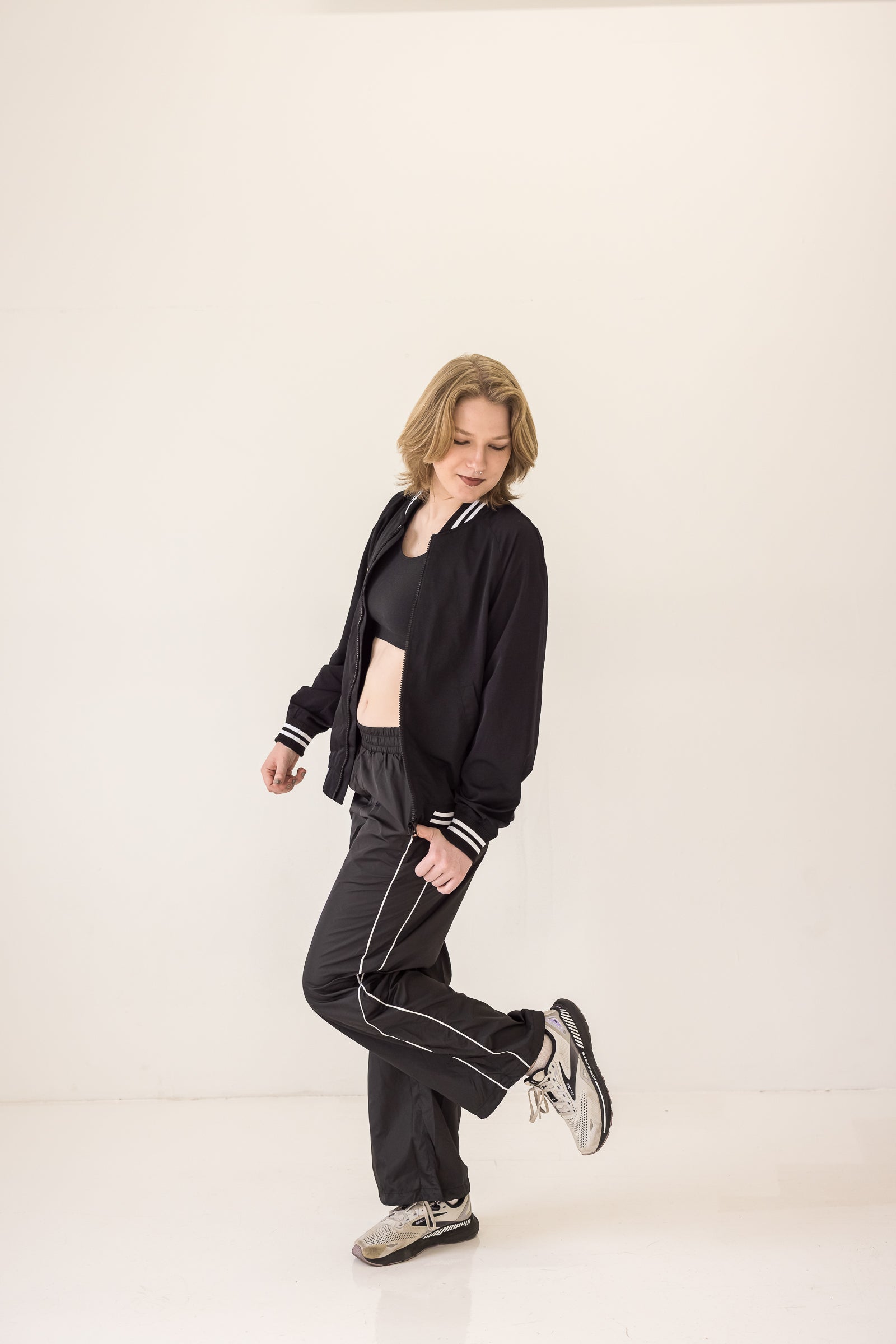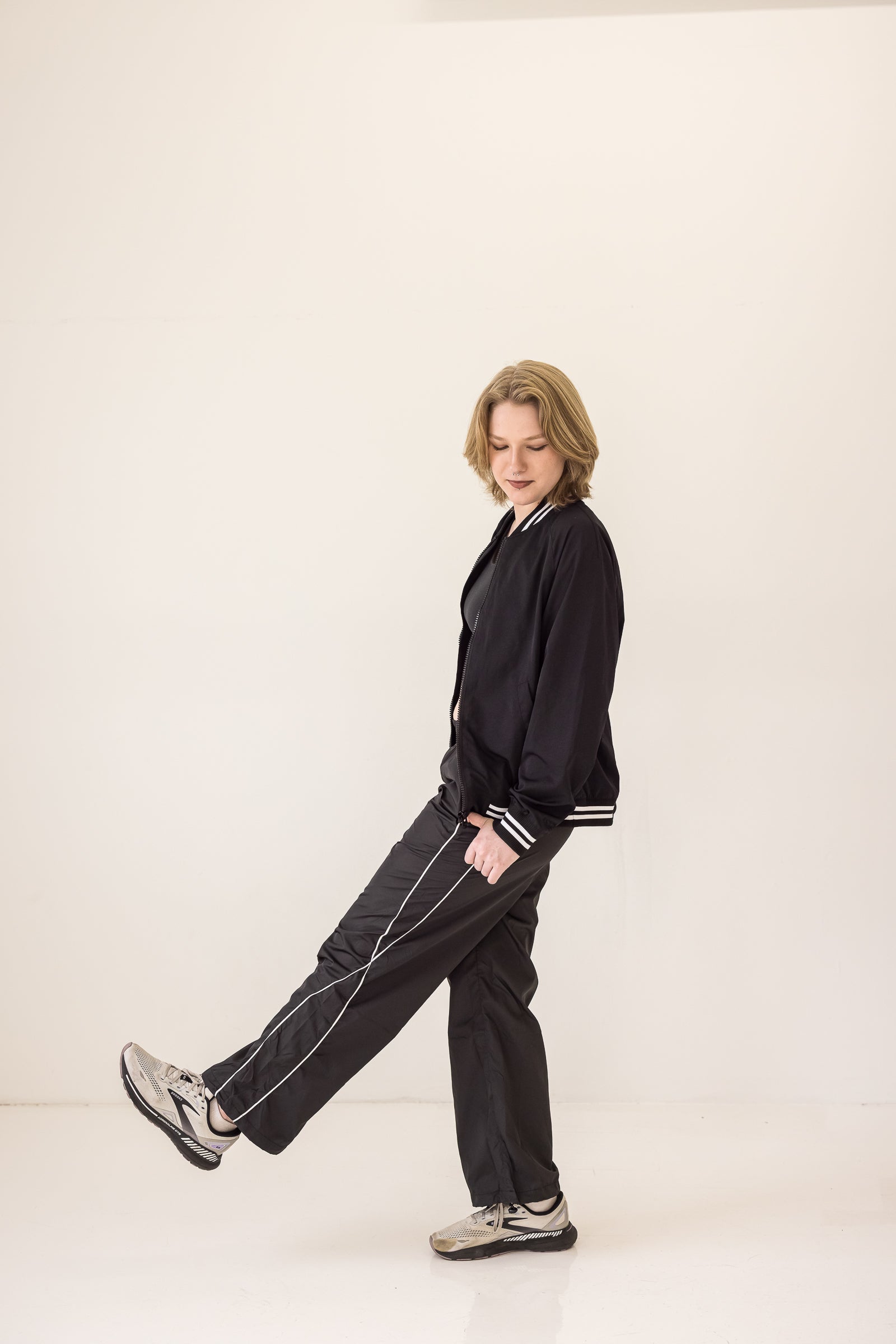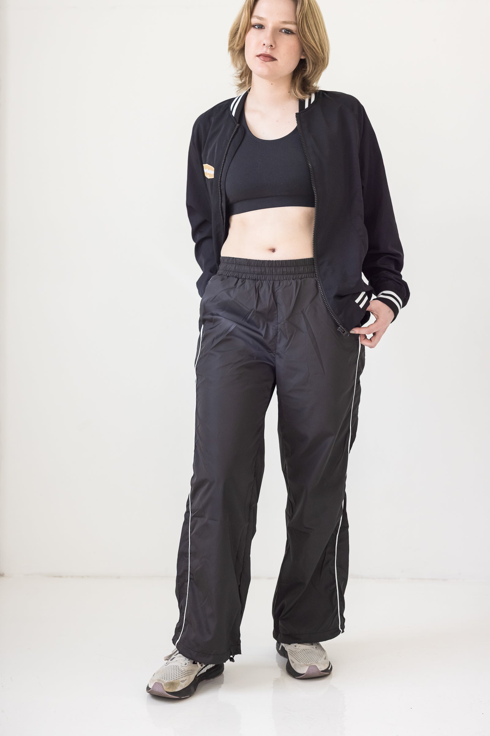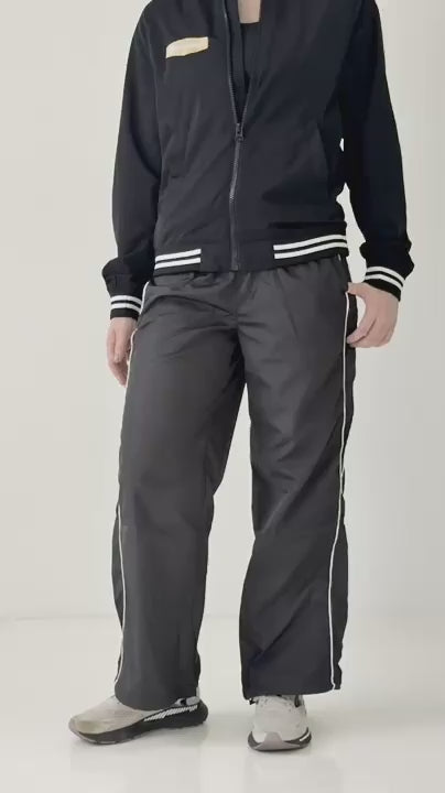 Designed with everyone in mind. Borderline is our classic fit track pant with side piping, rouched elastic waist, two front pockets and a gathered pull-tight toggle at the hem.