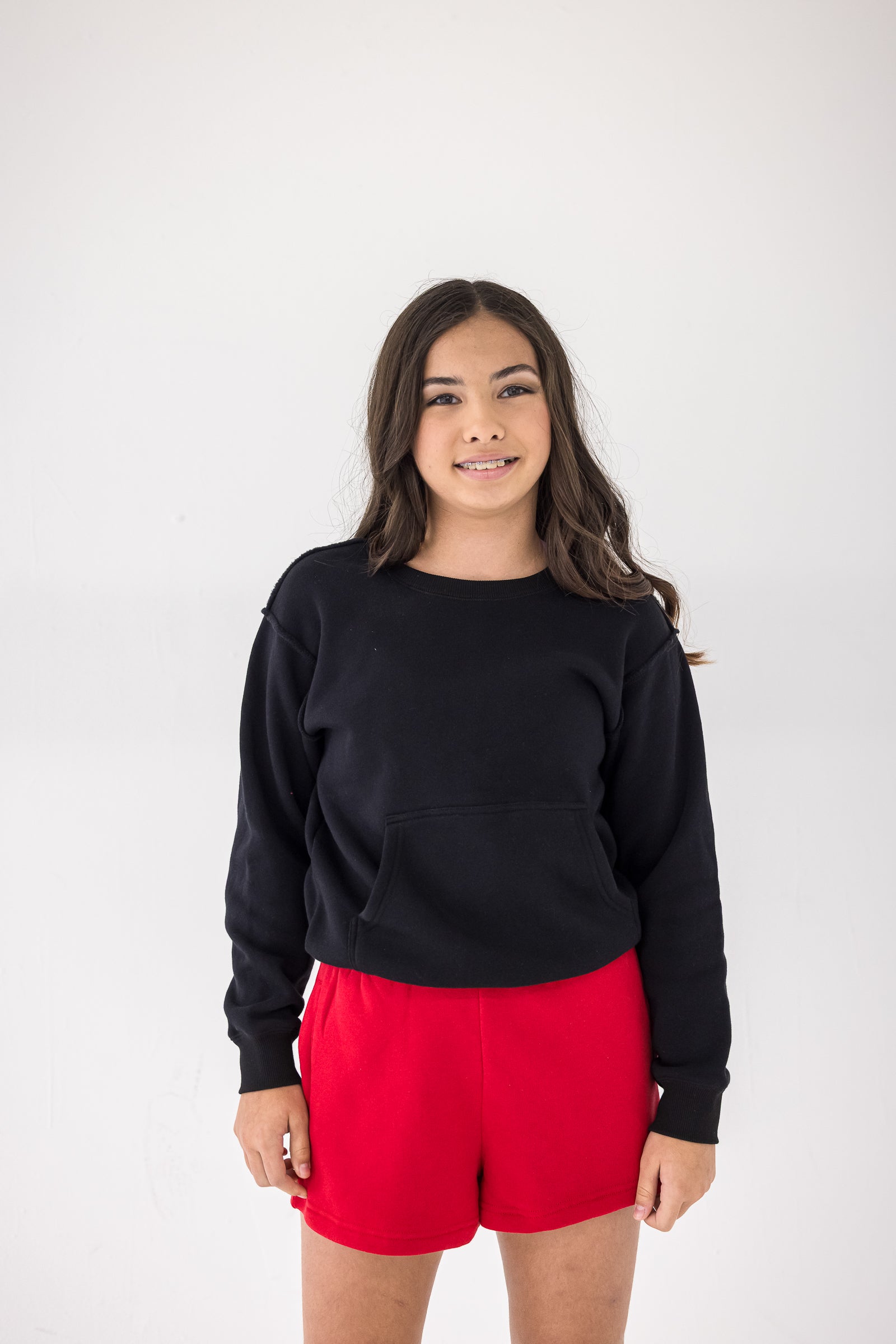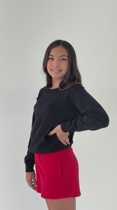 The Finesse Crewneck features our signature CozyLUX fabric, a relaxed fit, and a kangaroo pocket for added functionality. Finished with exposed shoulder seams and a structured banded hem, it delivers comfort with a refined edge.