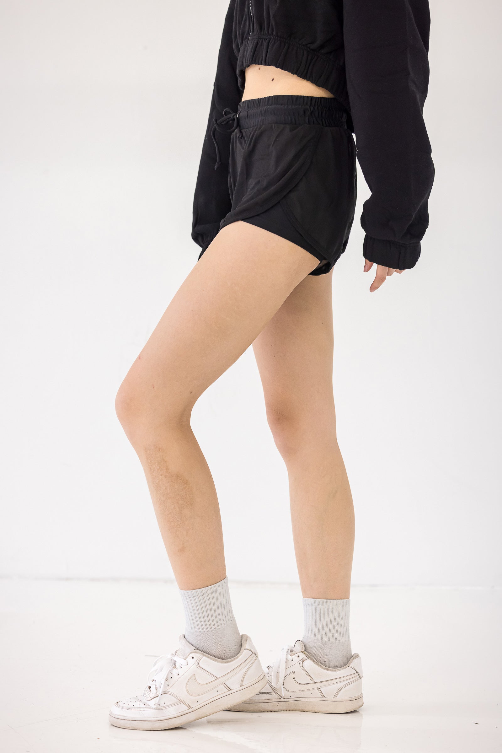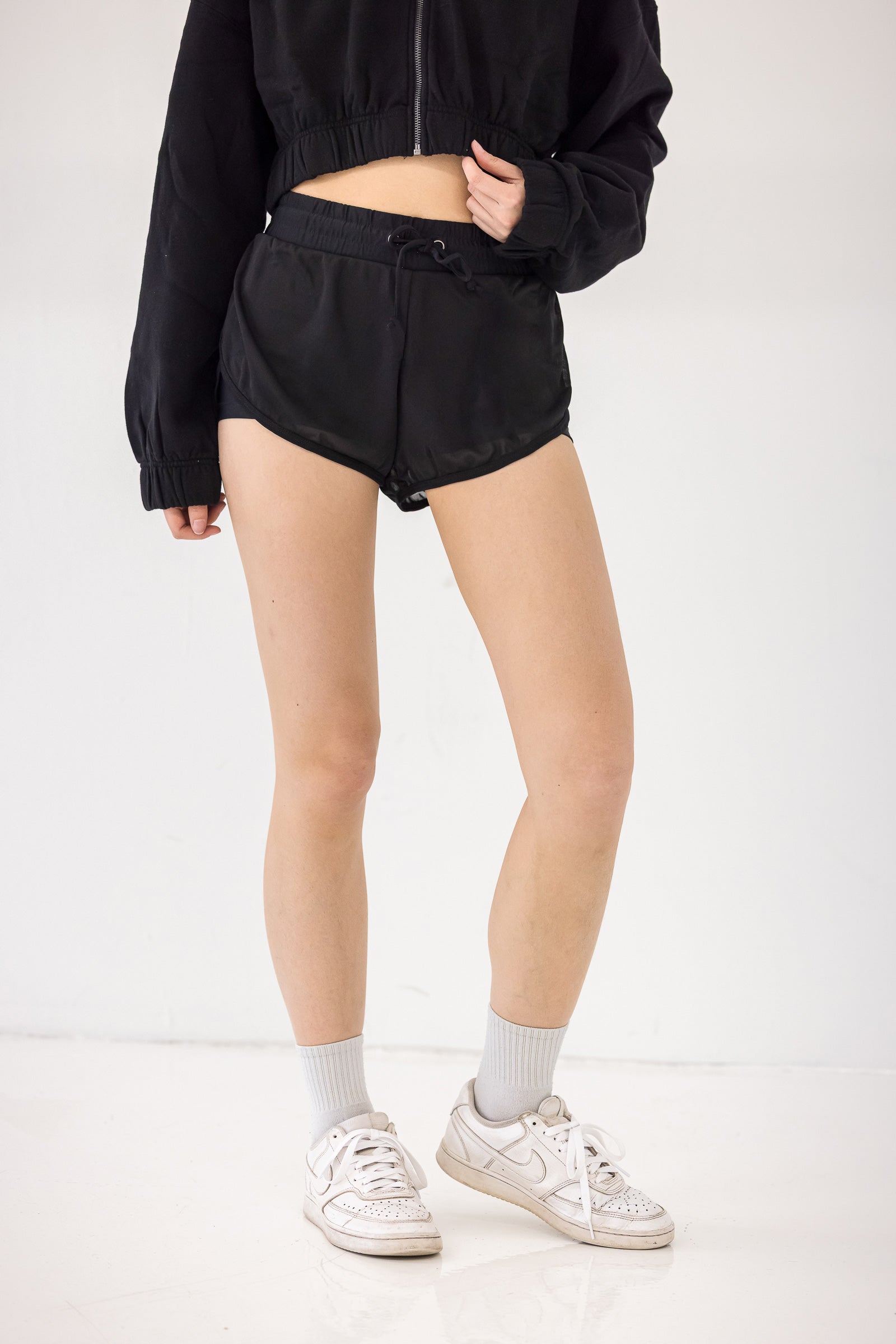 The Fame Shorts: Comfort that's not a shortcoming! These stylish two-in-one shorts come with a bike short underneath for confidence-boosting coverage and a mesh overlay on top for breathability.