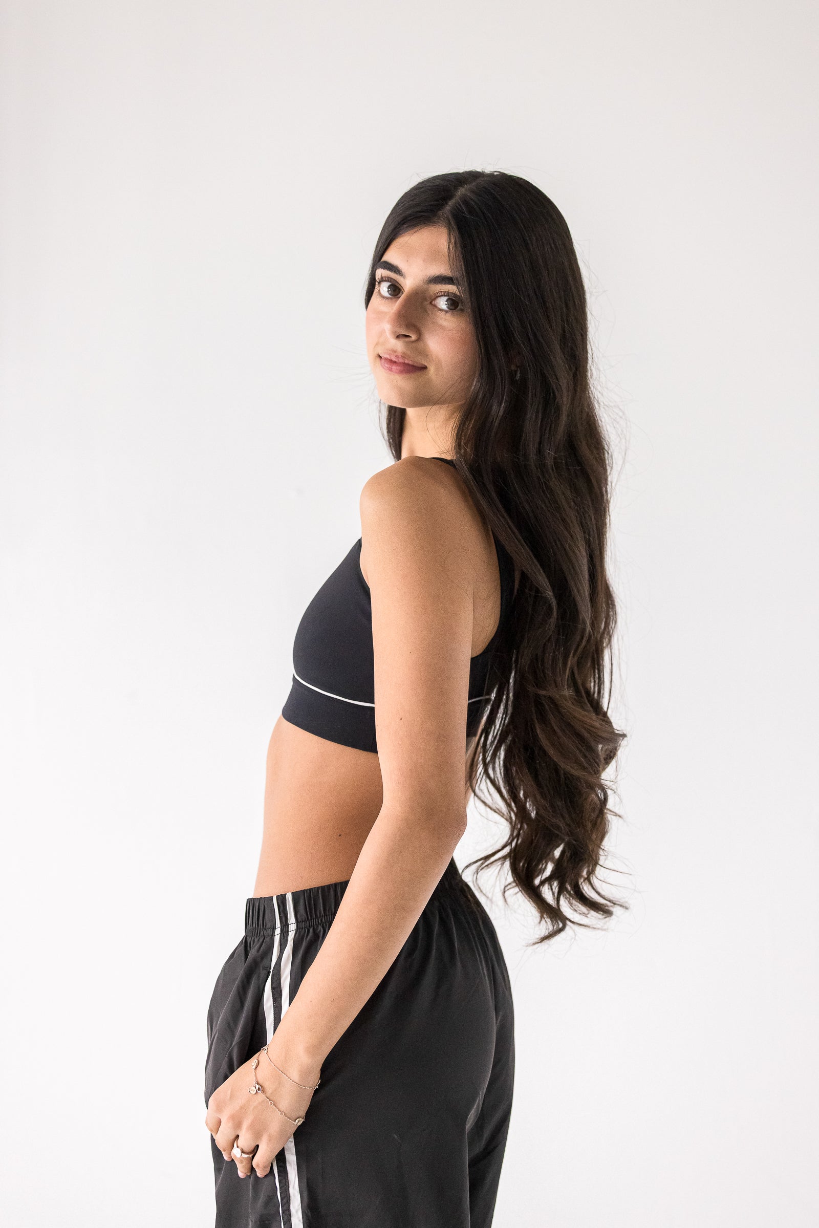 Meet the Mila Top! Comfort that doesn't compromise on style. This bra top is made from brushed fabric that's impossibly soft and feels amazing against your skin. The white piping accent gives it that extra edge, turning a basic essential into something you'll actually want to show off. Perfect for layering or going solo, it's the kind of piece that makes you feel confident and cozy at the same time.