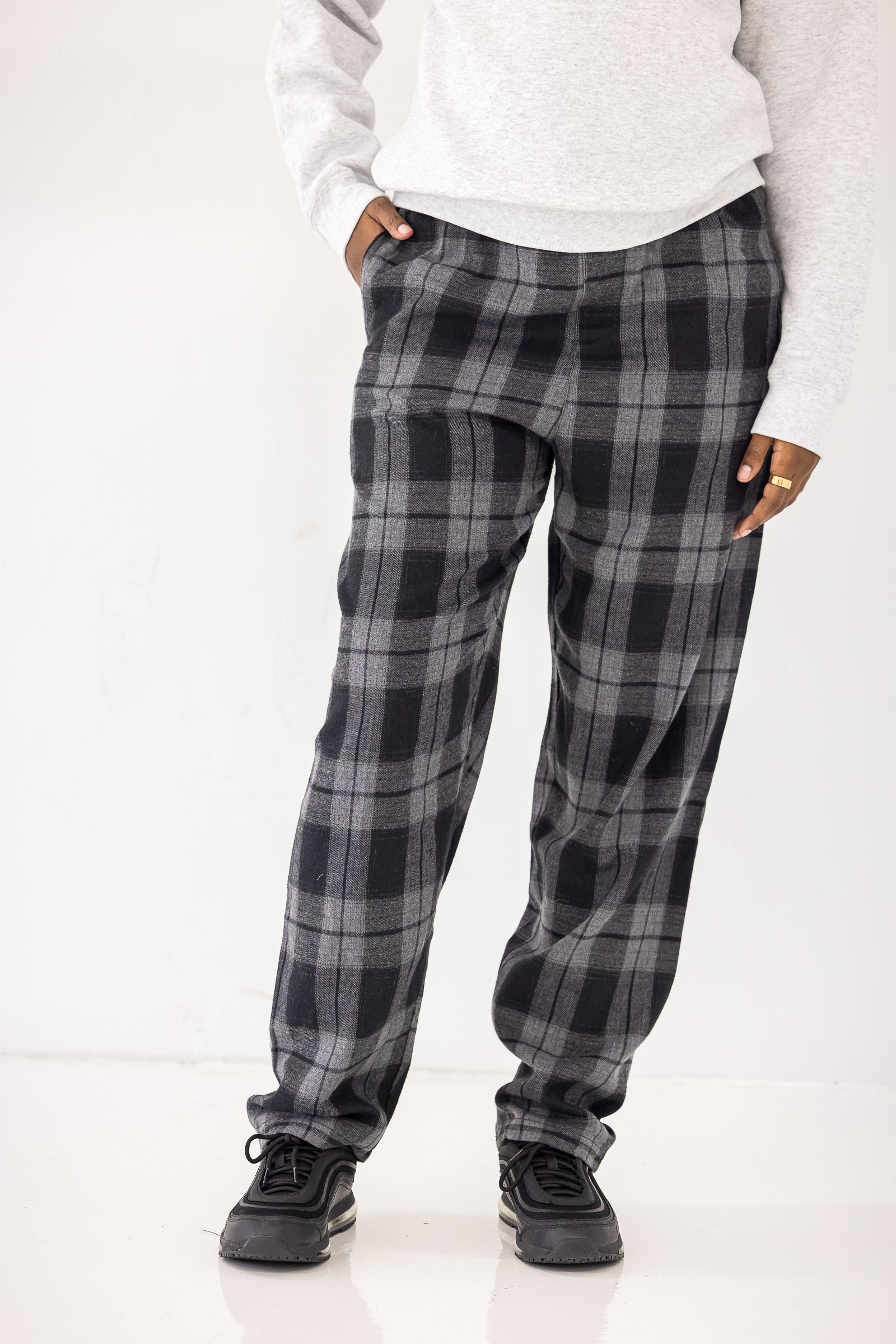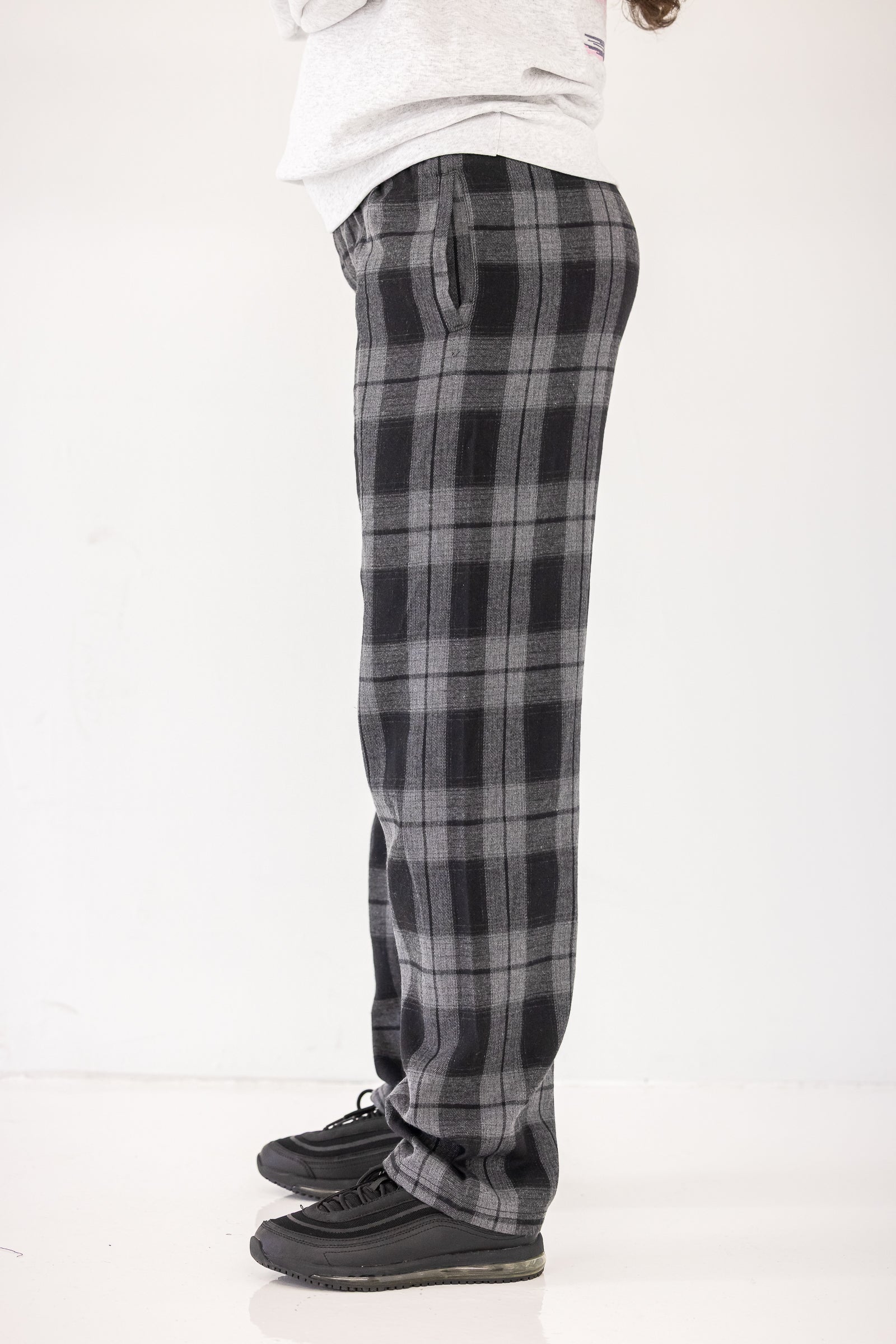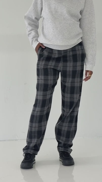 The Sweet Dreams PJ Flannel Pants feature soft plaid fabric, a relaxed silhouette, and a gathered elastic waist for easy comfort. Designed for sleeping or lounging, they offer an effortless, lived-in feel.